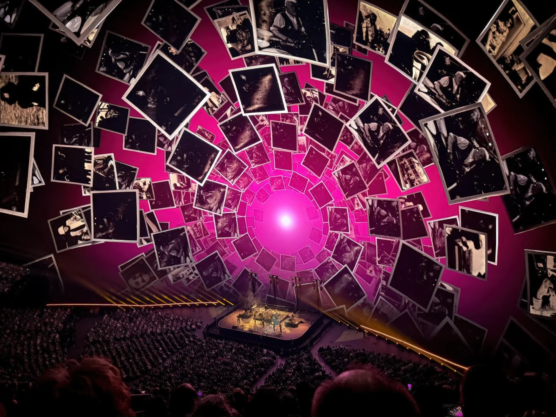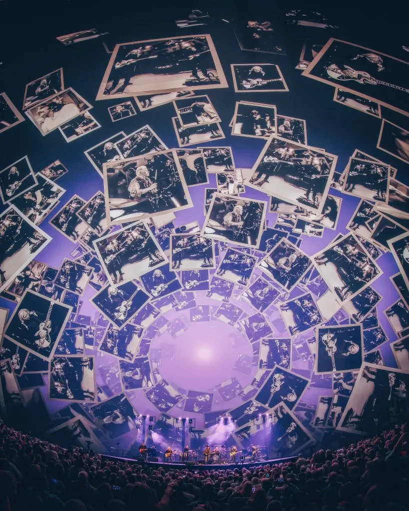 At the direction of Blink & Visual Endeavors, Shmody was charged with helping to produce IMAG FX for the Eagles’ 2024 residency at the world-famous Sphere in Las Vegas. As part of a small team of Notch designers, we created virtual environments for three songs, showcasing archival footage and live feeds of the performance in weathered polaroids, towering film strips, and swirling tunnels.