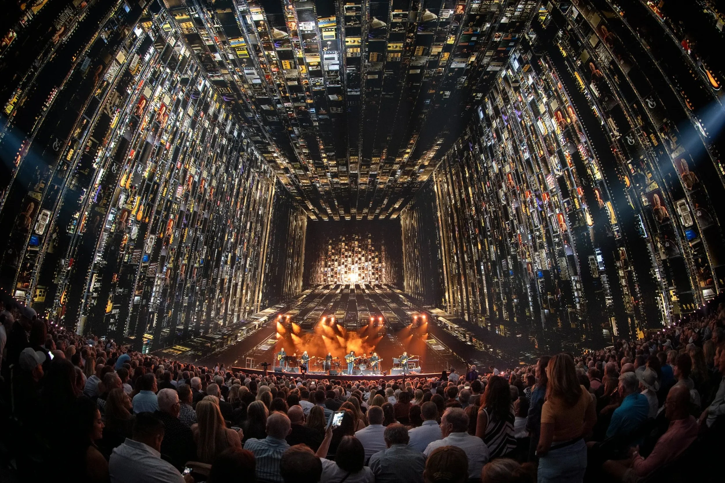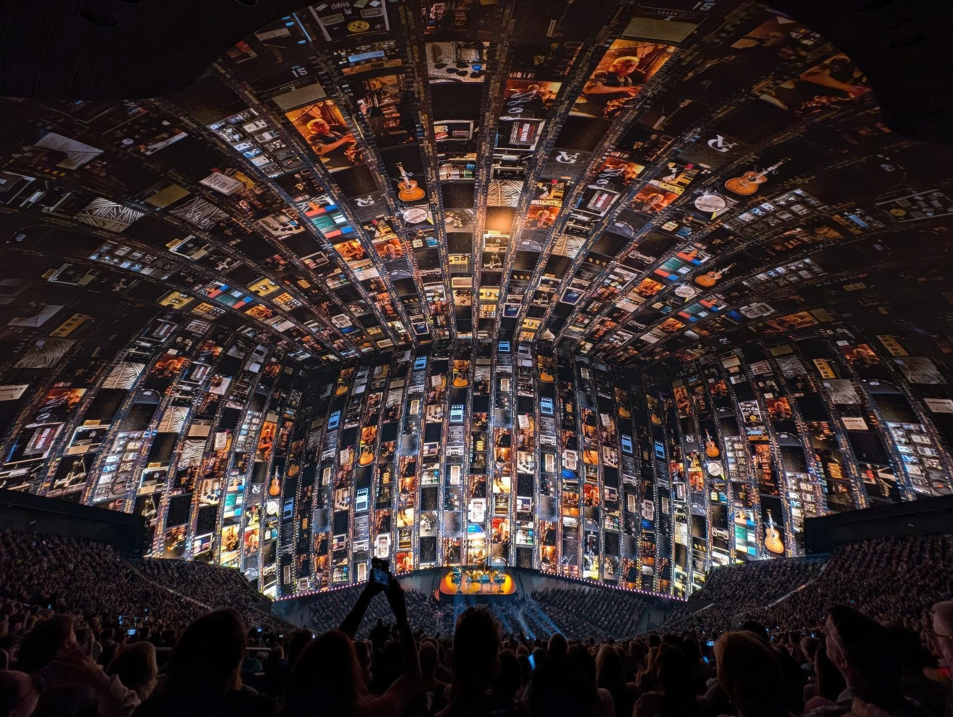 For Are You Gonna Go My Way, Shmody provided animations for a massive chandelier structure inspired by the music video for Kravitz’s iconic 1993 anthem. On Human, neon arches and monoliths were accentuated with song lyrics, creating a pulsating, club-like atmosphere. And lastly, for American Woman, we took a more graphical approach, playing off the idea of a “deconstructed American flag” — with radiating stripes, swift gradient wipes, towering IMAG, and so many strobes that we half-expected to crash the servers.